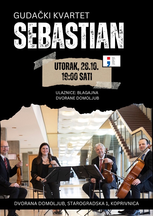 U utorak, 28. listopada s početkom u 19 sati, u dvorani Domoljub očekuje vas nezaboravna večer vrhunske komorne glazbe uz nastup Gudačkog kvarteta Sebastian, jednog od najistaknutijih hrvatskih ansambala s više od tri desetljeća umjetničkog djelovanja.
