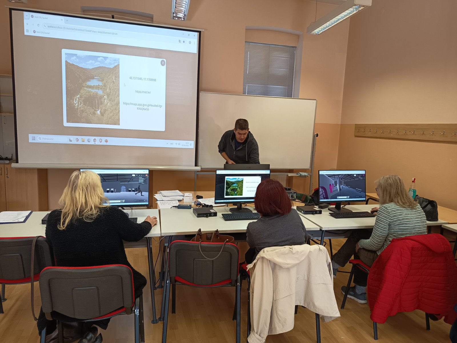 Uz vodstvo Dine Račkog te podršku Maje Holek i Irene Babić, svaki je sudionik samostalno pristupio platformi putem vlastitog računala. Nakon kratkih uputa, polaznici su istraživali okruženje Eduversea, kretali se putem svojih avatara i sudjelovali u zadacima prepoznavanja točnih i netočnih informacija.